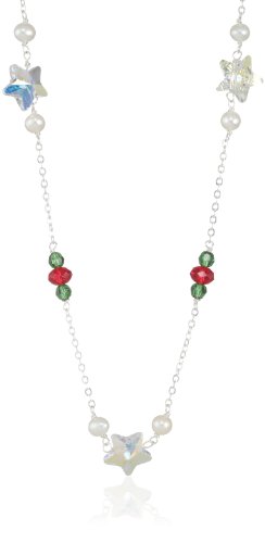 Swarovski Elements Crystal Aurora Borealis Stars with White Freshwater Pearls and Green and Red Swarovski Elements Accents on by Lita Trading Corp