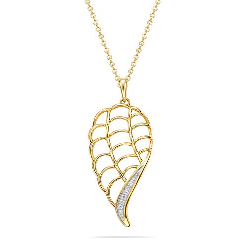 10k Yellow Gold Angel Wing with Diamonds Pendant Necklace (.03 cttw, I-J Color, I2-I3 Clarity), 18" Feature