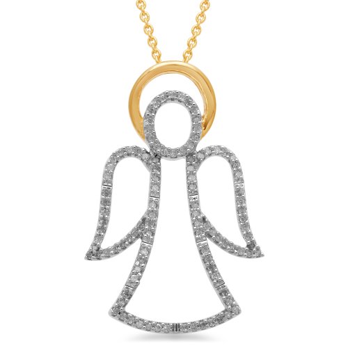 18k Gold Plated Sterling Silver Angel Pendant Necklace (1/4 cttw, I-J Color, I3 Clarity), 18" Feature