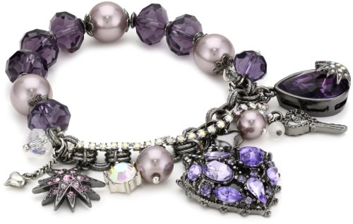 Betsey Johnson "Iconic Celestial" Crystal Heart Multi-Charm Half Stretch Bracelet by Betsey Johnson