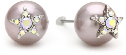 Made in China Items that are handmade may vary in size, shape and color Purple Glass Pearl Stud With Silver Tone Star Detail With Crystal Accents