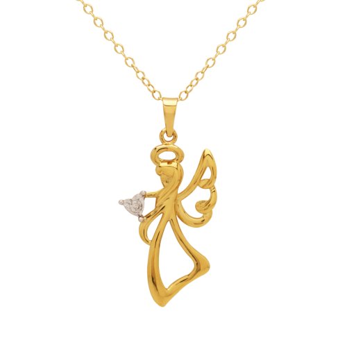 DiAura 14k Gold Plated Sterling Silver Diamond-Accent Angel Pendant Necklace Feature