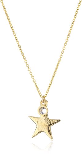 Gold plated delicate star pendant with crystal accent.Delicate star necklace accented with tiny cz drop.Made in USA..
