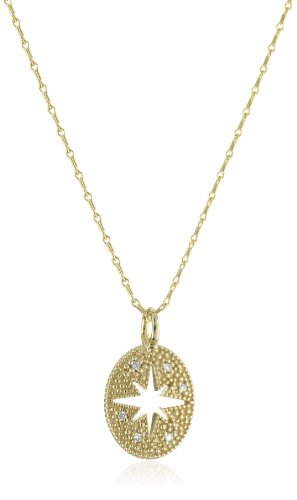 Made in Thailand.This medallion is removable. The great thing about Mizuki's Collection is that you can always add more charms later.White full cut diamonds fill up the space surrounding the cut out cross .05ct.The 16" 14 Karat gold barley chain can be worn separately.Mizuki's rich gold medallion with glistening white diamonds has a cut out design of a starburst in the center of the medallion..