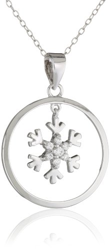 Sterling Silver Circle and Cubic Zirconia Snowflake Pendant Necklace, 18"