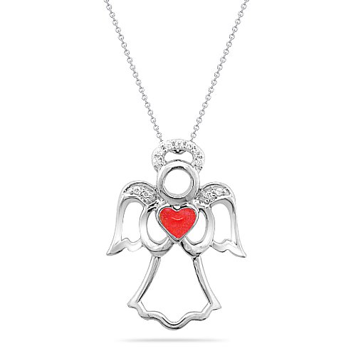 Sterling Silver Enamel Angel with Diamonds Pendant Necklace (0.03 cttw, I-J Color, I2 Clarity), 18" Feature