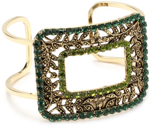 Yochi Green Crystal Leaf on Gold Plated Open Square Cuff Bracelet Feature