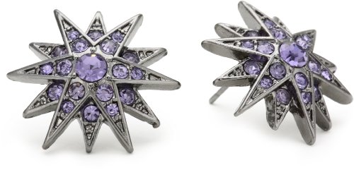 Silver Tone Starburst Stud With Purple Colored Crystal Accents.Items that are handmade may vary in size, shape and color.Made in China..