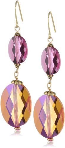 Fuchsia and Pink-hued Swarovski crystals are linked together with delicate gold-plated filagree accents. Finished with a pink Swarovski rhinestone peeking out of the bottom Made in United States Items that are handmade may vary in size, shape and color