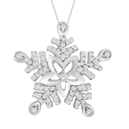 Sterling Silver Diamond Snowflake Pendant Necklace (1/3 cttw, H-I color, I1-I2 Clarity), 18" Feature