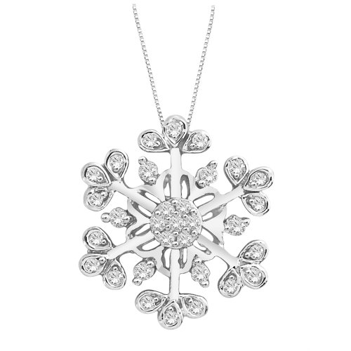 Sterling Silver Diamond Snowflake Pendant Necklace (1/5 cttw, H-I color, I1-I2 Clarity), 18"