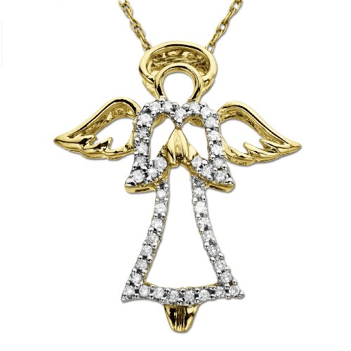XPY 14k Yellow Gold Diamond Angel Pendant (1/8 cttw, I-J Color, I2-I3 Clarity), 18" Feature