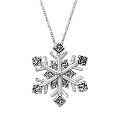 XPY Sterling Silver Diamond Snowflake Pendant Necklace (.03cttw, I-J Color, I2-I3 Clarity), 18" Feature