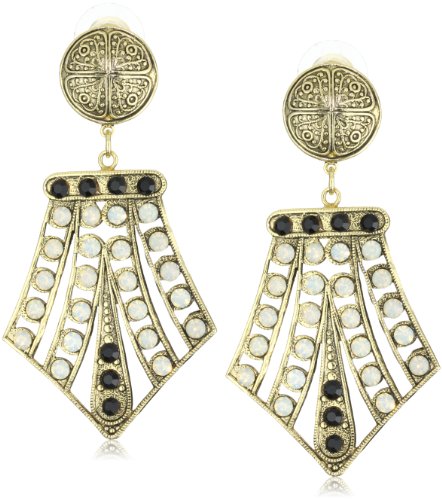 Yochi White Opal and Black Crystal Filigree Earrings Feature