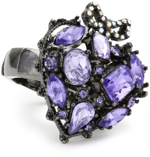 Made in China Items that are handmade may vary in size, shape and color Handmade rings may range a 1/2 size up or down Hematite Tone Heart With Purple Colored Crystal Gems And Crystal Bow Accent, Hematite Tone Segmented Stretch Ring Shank Handmade rings may range a 1/2 size up or down Made in CN