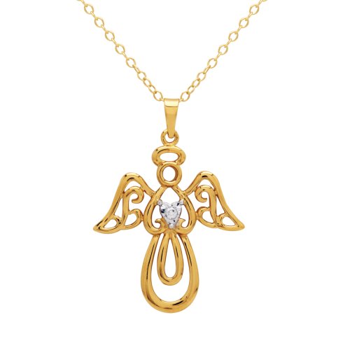 DiAura 14k Gold Plated Sterling Silver Diamond-Accent Angel Pendant Necklace Feature
