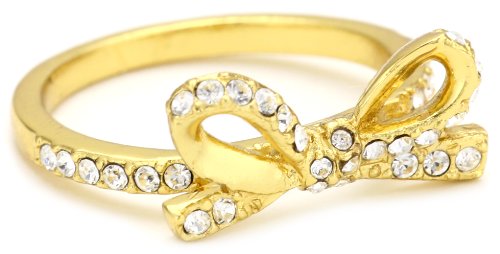 Kate Spade New York "Skinny Mini" Gold-Tone Pave Bow Ring, Size 7 Feature