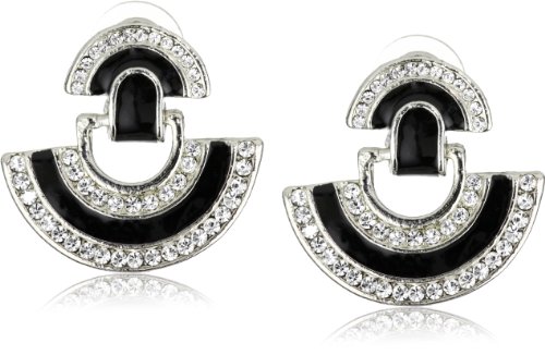 Yochi Crystal Pendulum Swing with Black Enamel Earrings Feature